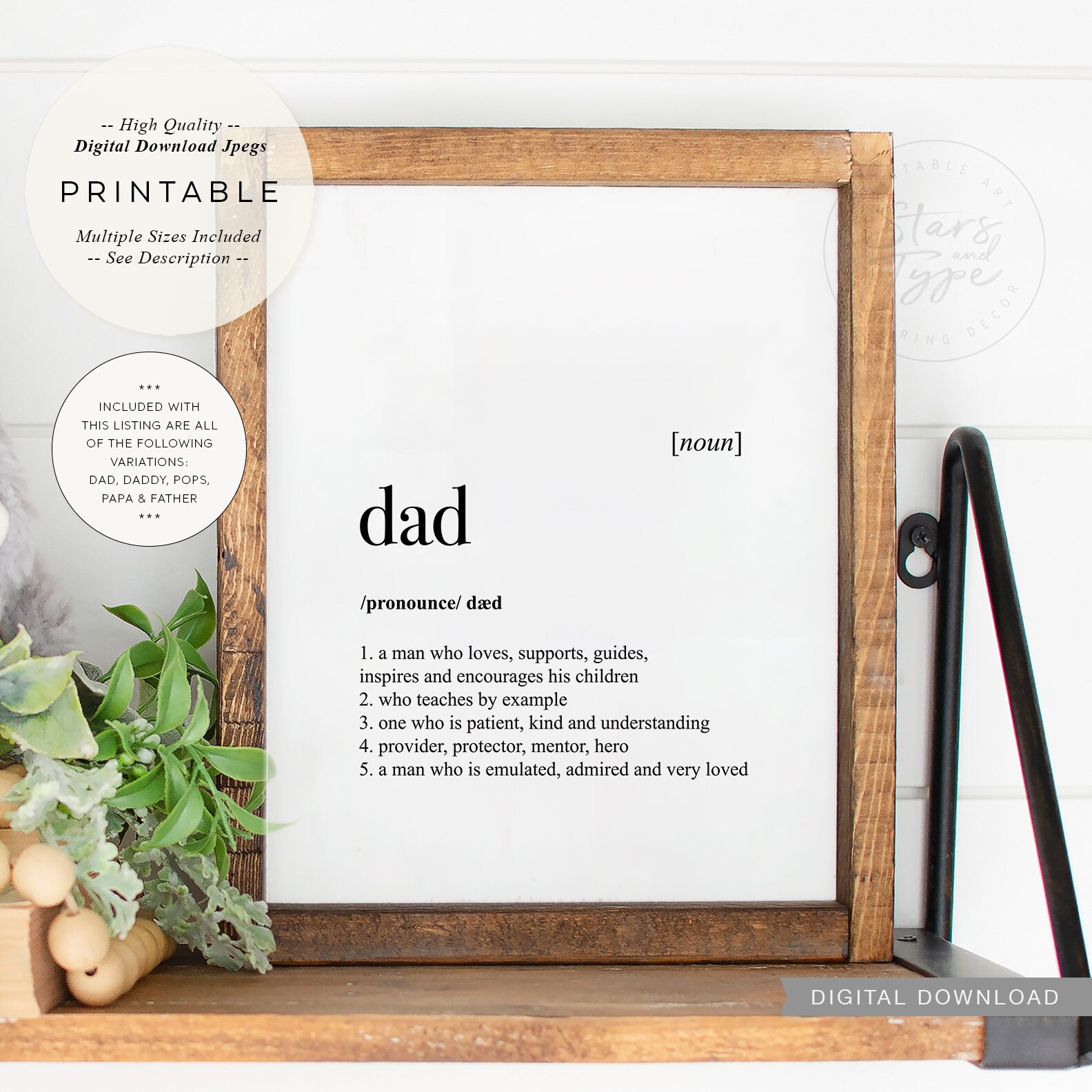 Dad Definition Printable Art Pops Daddy Papa Father Quote Etsy